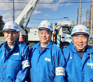 研修時に同期の仲間と過ごした時間は良い思い出です。現在は作業班の一員として高所作業車に乗っています。工事の手順・工法など新たに覚える事も多く技術を深めていくのは大変ですが、チームで仕事を完成させた時の達成感、自然災害などの復旧作業をした際は使命感が湧き充実しています。社会のライフラインを守る責任・やりがいのある仕事です。一緒に働きませんか??