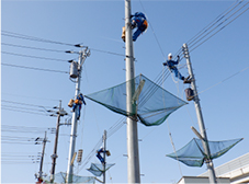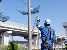 入社後4月~6月までの3ヶ月間、総合研修所で基礎訓練を行います。まず電気の基礎と安全についての座学、その後電柱に昇る訓練、さらには実際の材料を使い、現場と同じ条件で実技訓練を実施します。「安全第一」をモットーに熱意を持って指導します。時には厳しい指導になることもありますが、これからの会社生活には絶対必要なことです。社会のライフラインを守る重要な担い手になれるよう一緒に頑張りましょう。